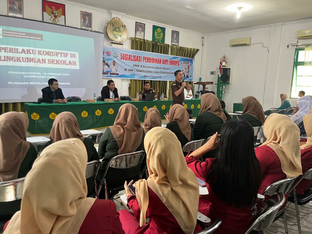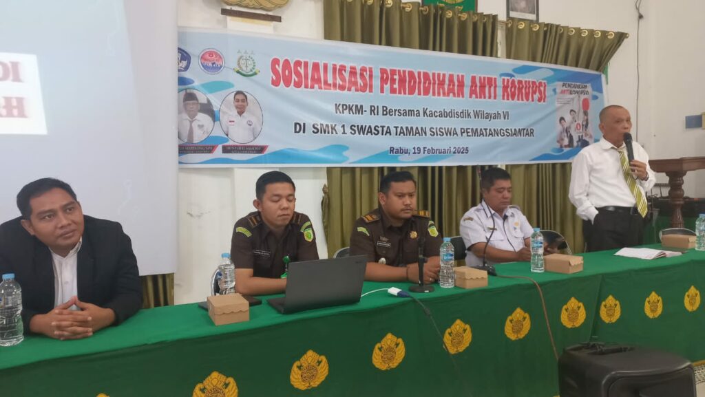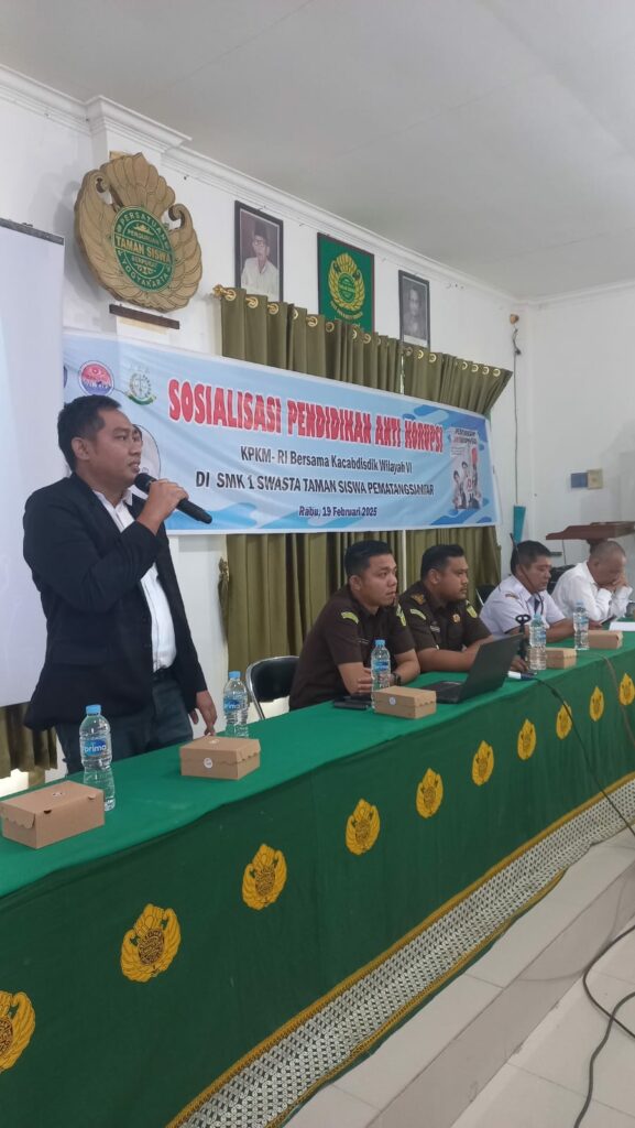 SMK 1 Swasta Taman Siswa Pematang Siantar yang beralamat di jalan Kartini Kota Pematang Siantar Mengelar Sosialisasi Pendidikan Anti Korupsi Bersama KPKM-RI Pada Hari Rabu, 19 Februari 2025 di aula Ki Hajar Dewantara.